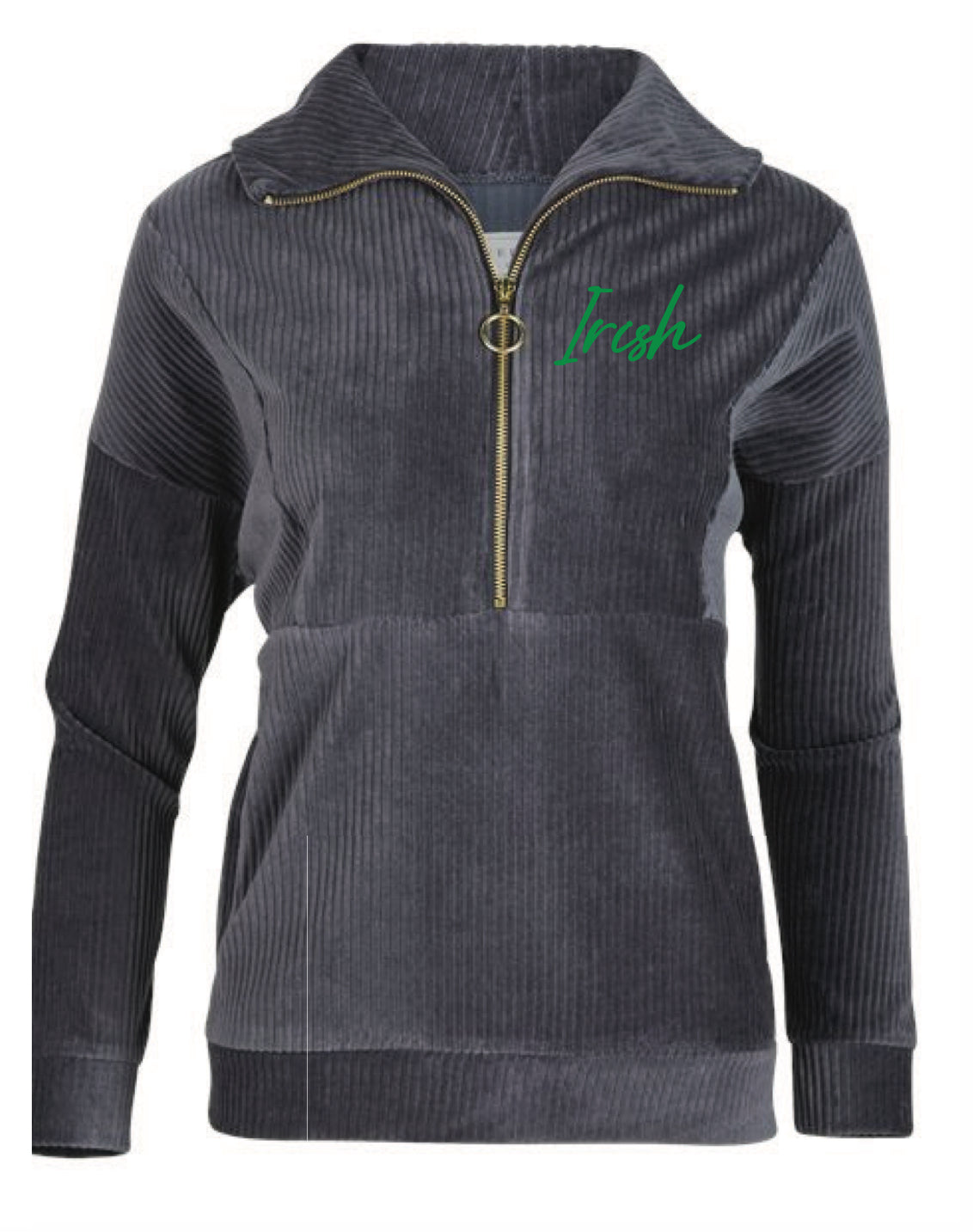 Give your cozy weekend wardrobe a modern update with our Manchester Quarter Zip Pullover. Soft, corded cotton-poly fabric has a velour texture with a hint of built-in stretch for added comfort. A deep gold-tone zipper is accented with a retro ring zipper pull. Banded bottom and cuffs. Slash welt pockets complete the versatility.